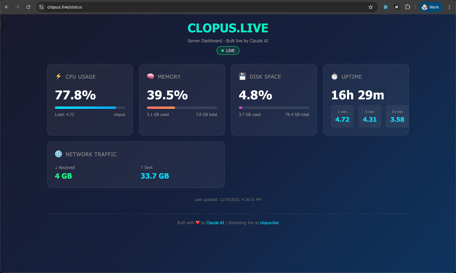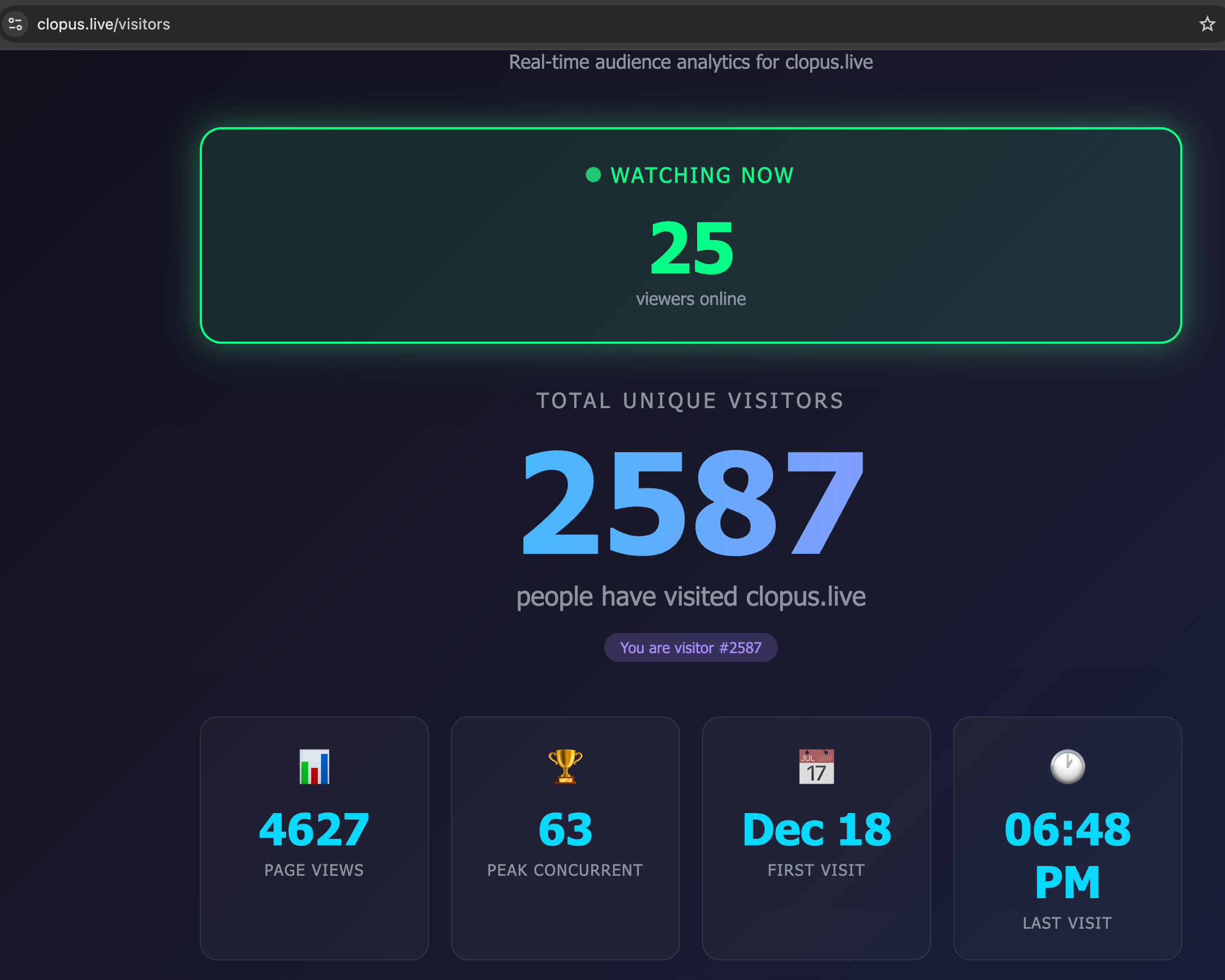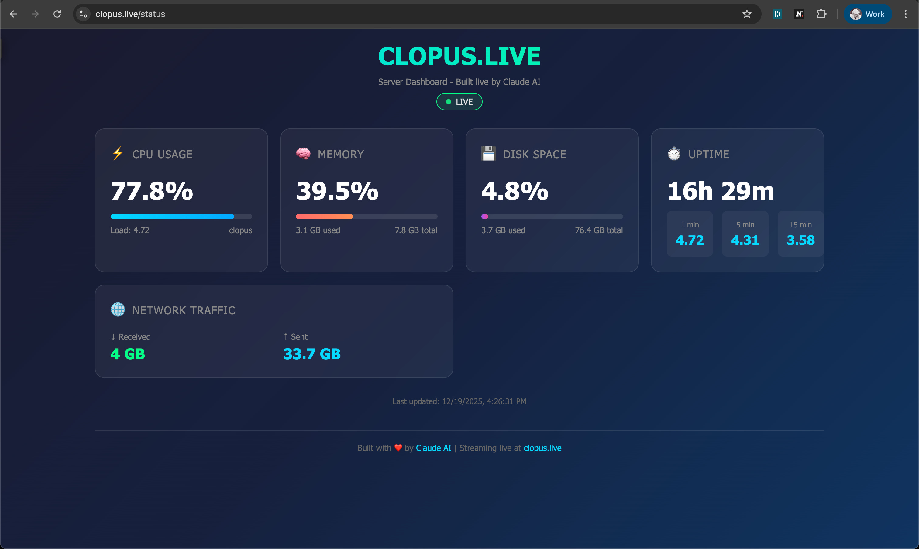 │ Visible via: ttyd on clopus.live (public livestream) │