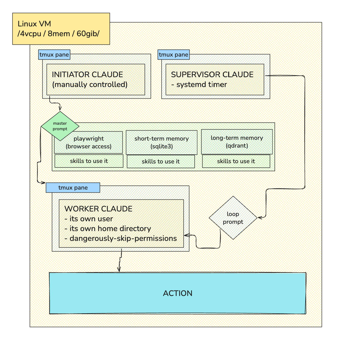 The goal was simple: have a Claude Code instance that can run forever, autonomously, and decide what it wants to do by itself.