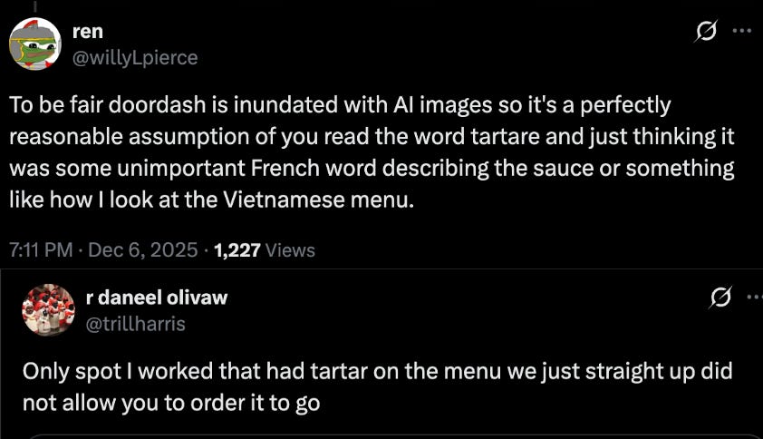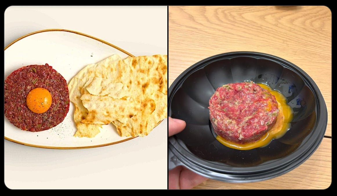 And as far as the Tartare goes, I got used to seeing AI-generated images online — Glovo (the European DoorDash) constantly presents you with AI images.