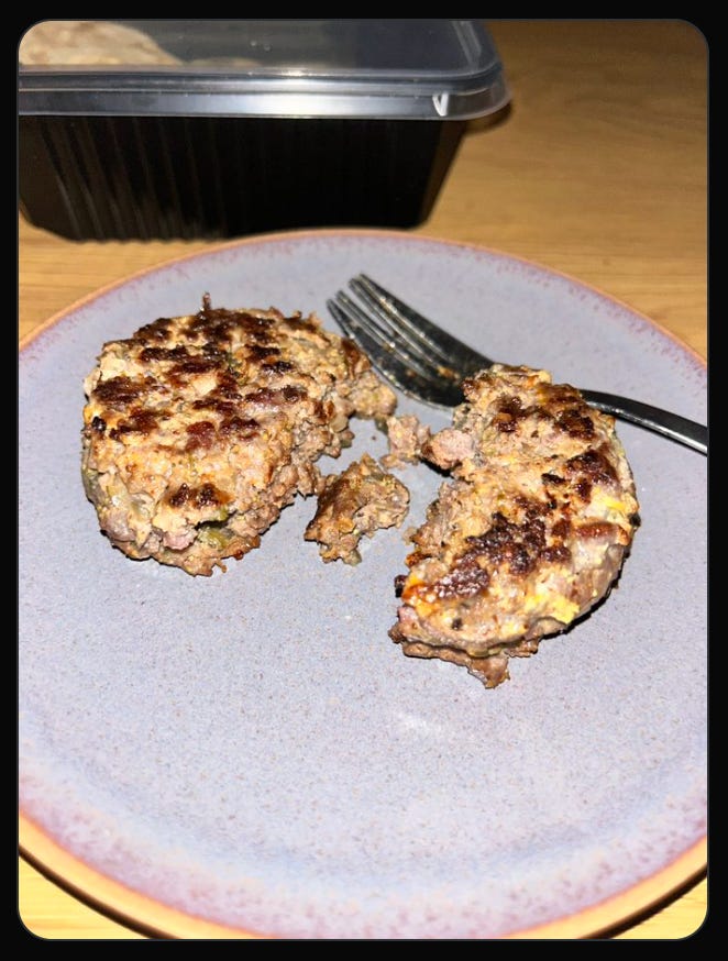 “very funny that you just ignored them having a picture of raw meat and yolk and calling the burger a name you’d never heard before”